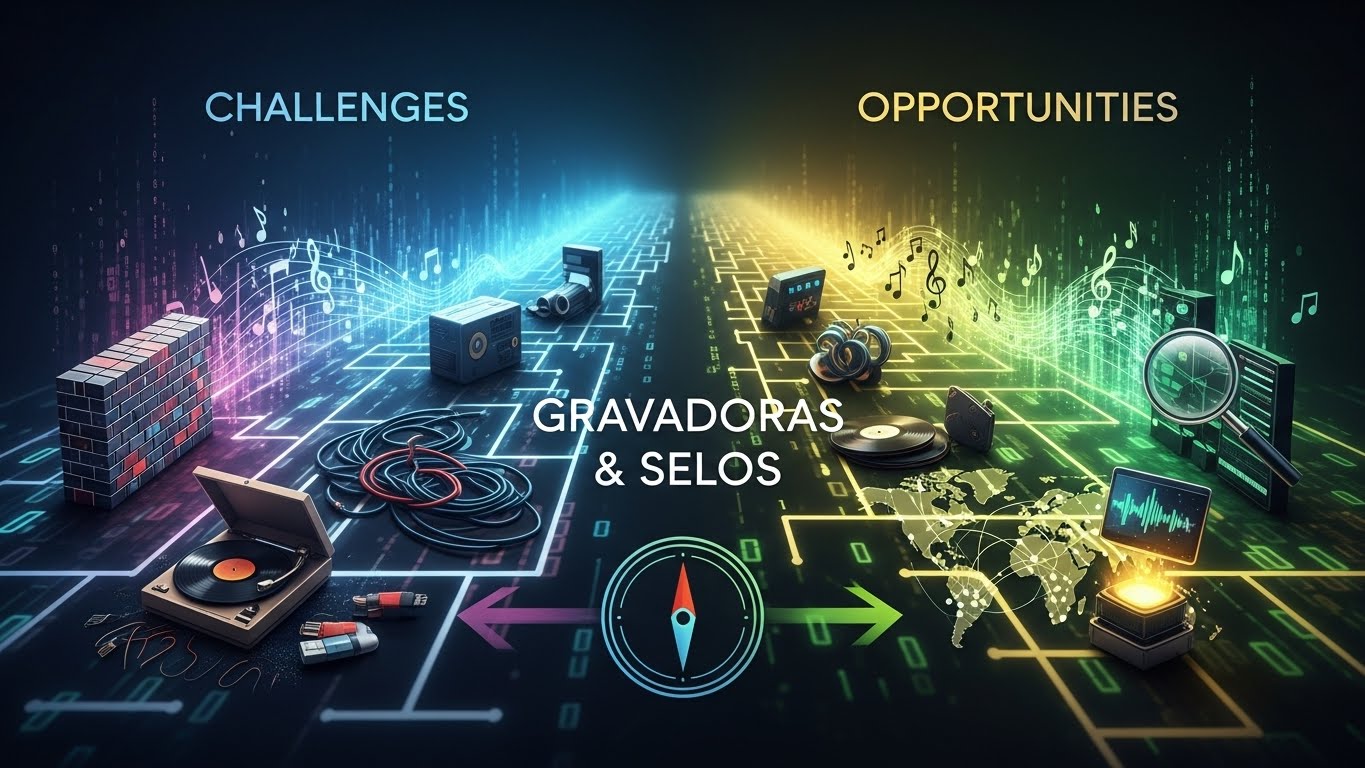 The digital age presents several challenges for gravadoras and selos. One major issue is the increased competition from independent artists who can distribute their music directly to audiences without the need for a traditional label. This democratization of music distribution means that labels must work harder to prove their value to artists.